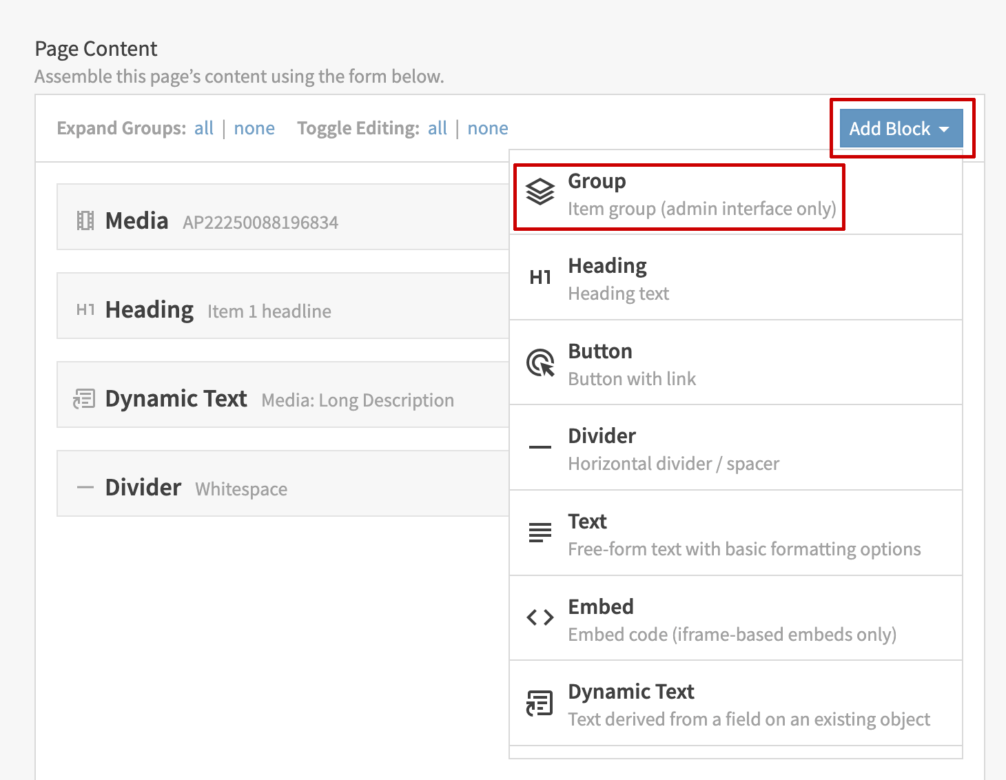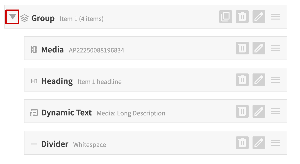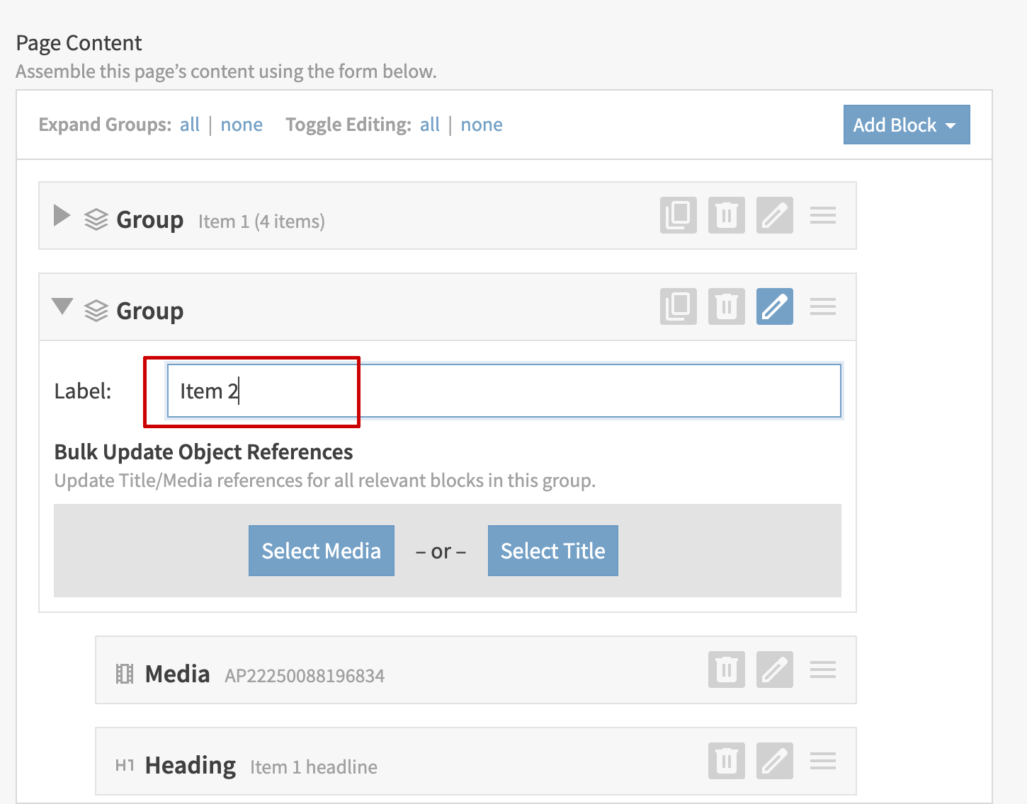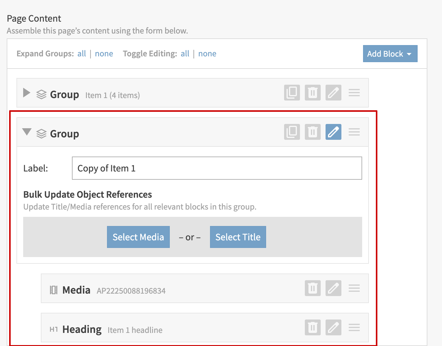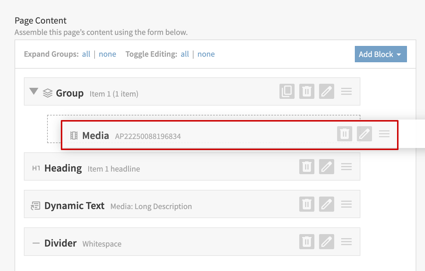 Ex: You can change the media item by opening and swapping it, as well as the text of the heading, etc.