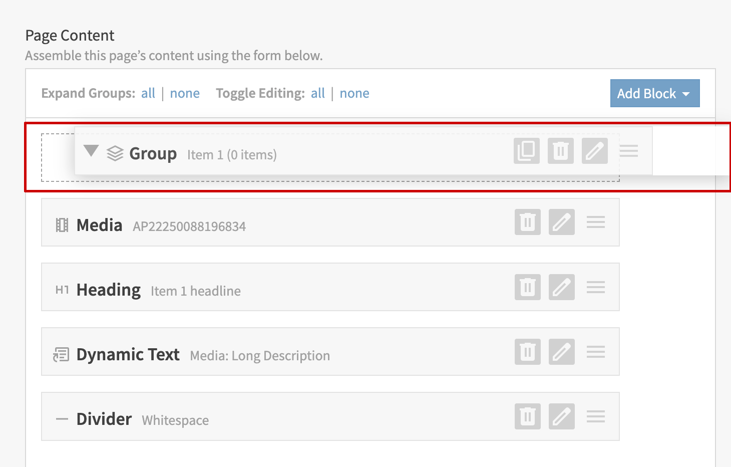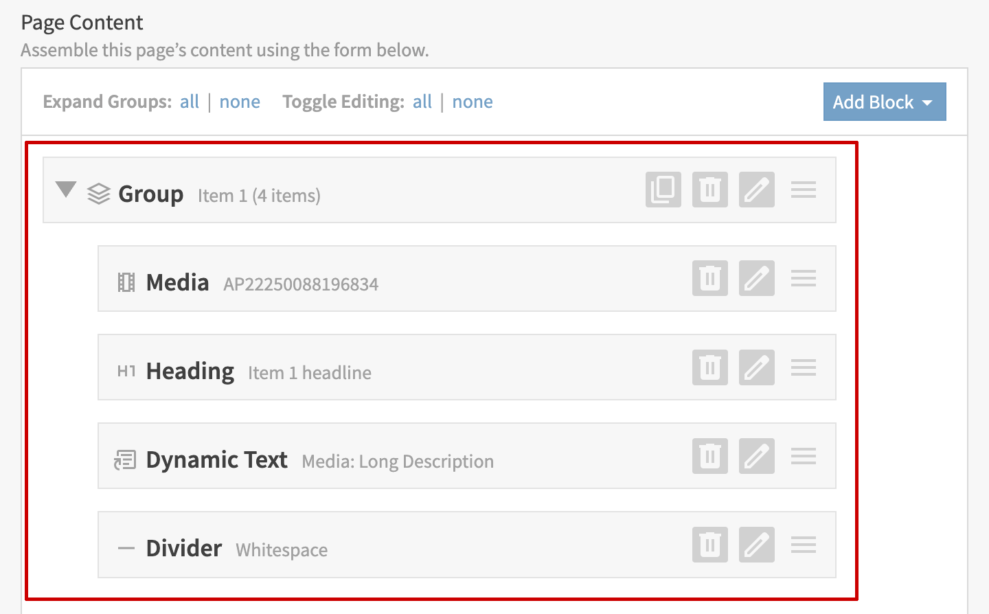 This is particularly handy when a page or content area contains sets items that will appear with similar logic down the page.